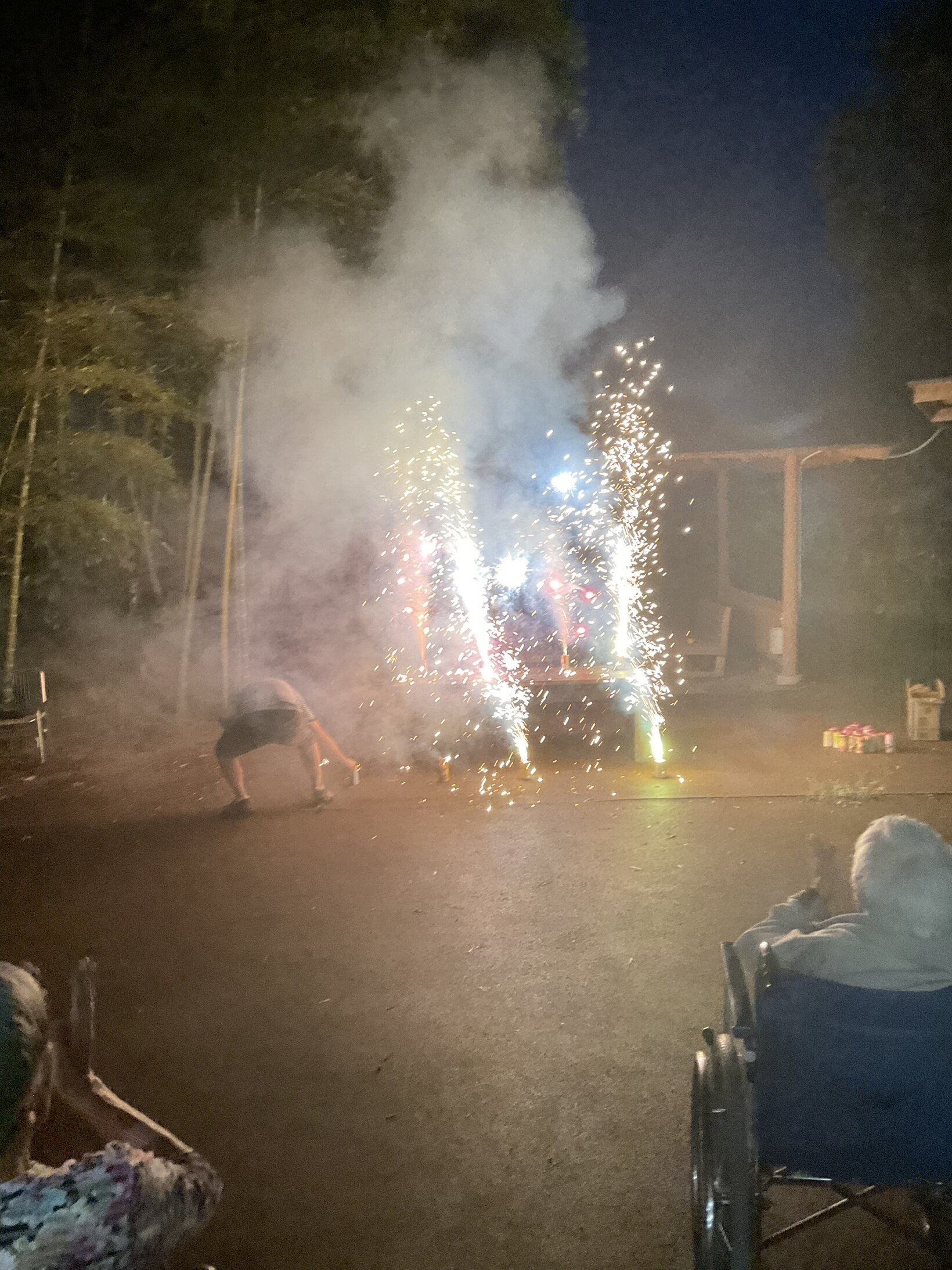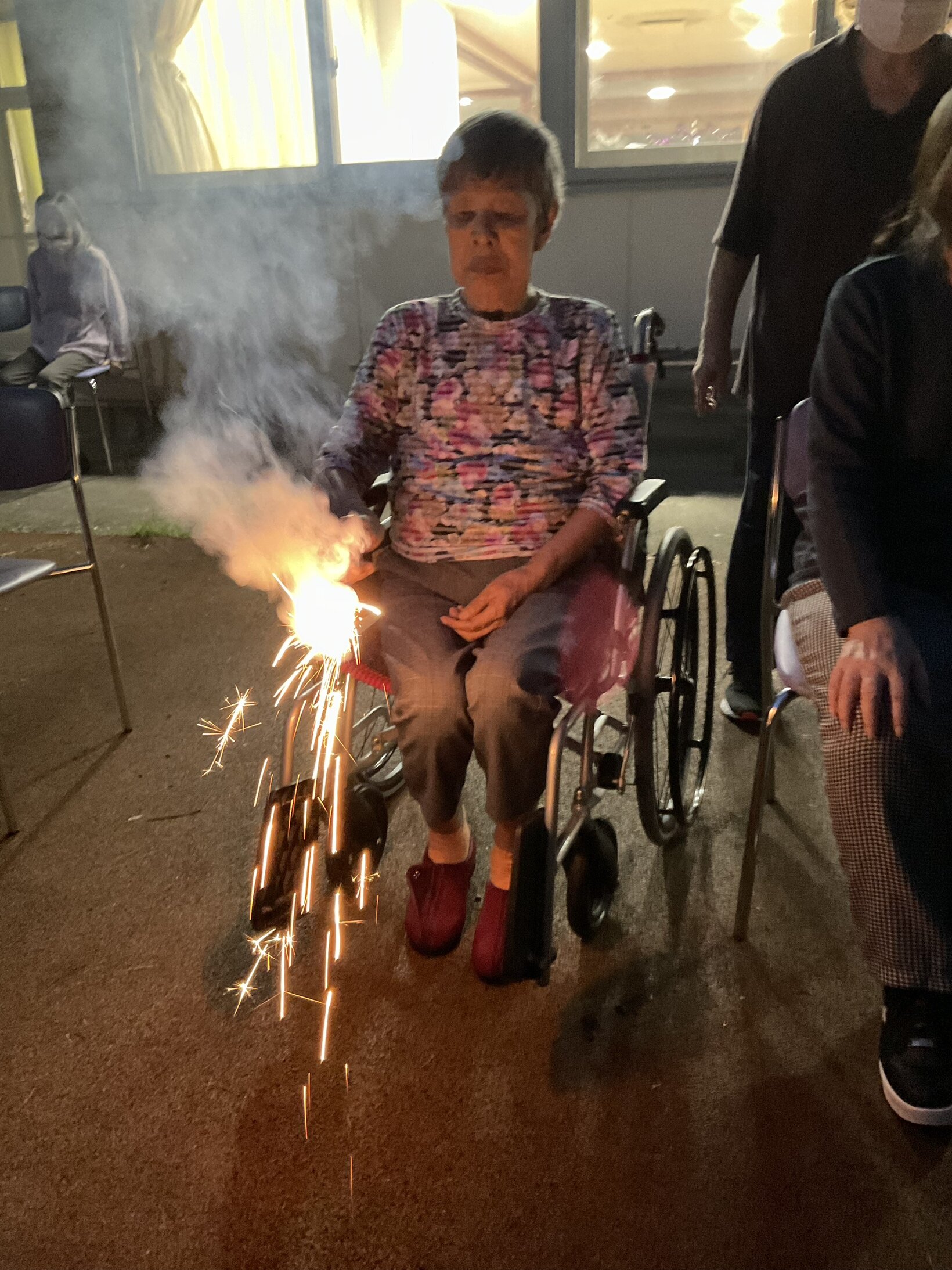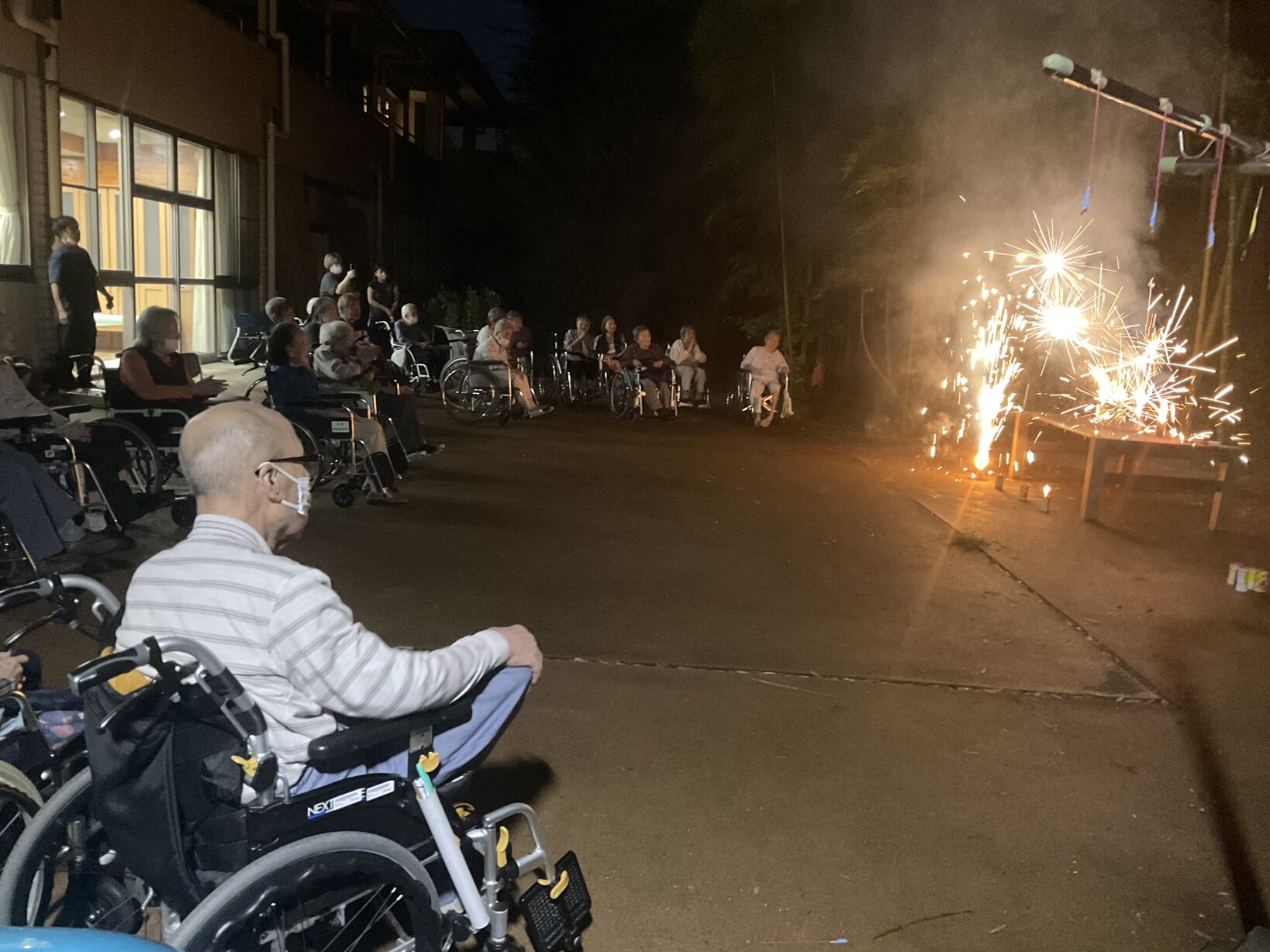 9月17日18時より、当施設の庭にて花火大会を行いました。