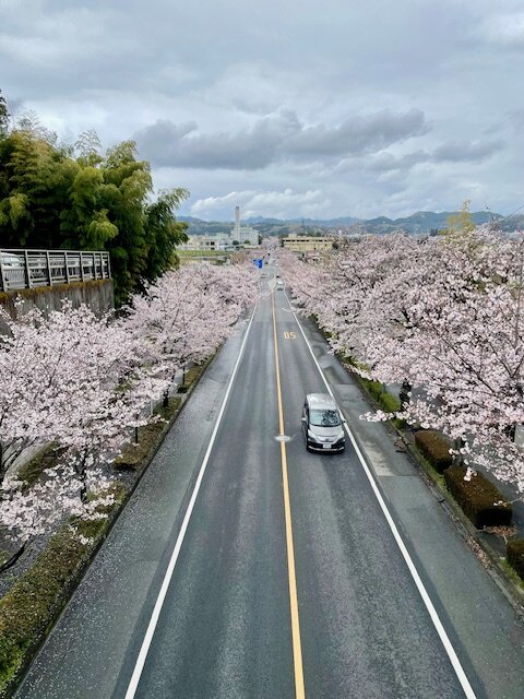 道路の両サイドに植えてある桜の木が満開になった時に